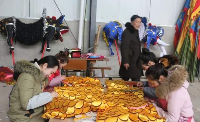 严家畈村湾妇女缝制百节龙龙衣