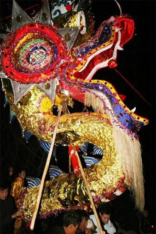说到游龙,那可不是一般人能干的活儿!村湾里的青壮年劳动力,是举着百节龙游乡送福的主力军。百节龙四百多米长,一出去就是500人的队伍,清一色全是男子汉,从正月初一到正月十五每天游乡送福,风雨无阻。他们每天早晨6点钟就要起床,晚上有时候要到12点钟以后才能回村。游龙队伍所到之处,欢声笑语,村民们争相观看这壮观的景象。百节龙外出巡游,最关键的是保证龙头直立,顺利前行。举龙头可不是件容易的事,龙头重达200斤,需要80人的队伍轮流举托,所以,举龙头的队伍里个顶个都是大力士。